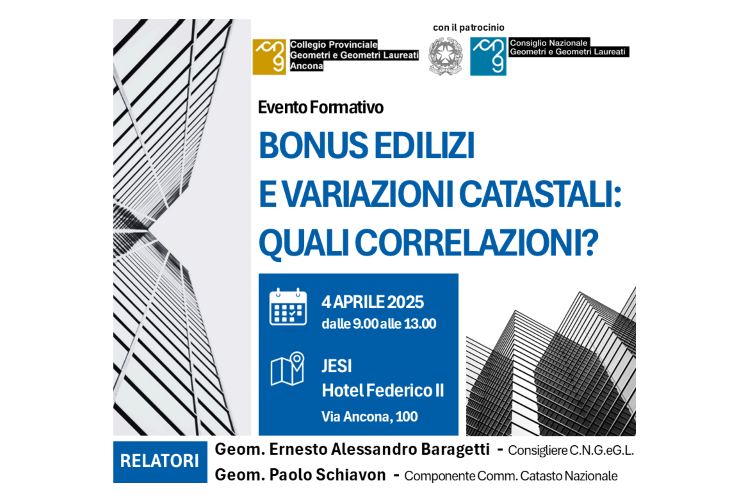 RELATORI: Geom. Ernesto Alessandro Baragetti – Consigliere del Consiglio Nazionale Geometri e G.L.