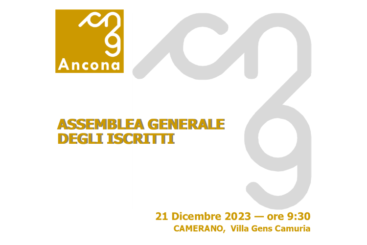 Il giorno 21 dicembre p.v. dalla ore 9,30, presso la Villa Gens Camuria – Via Direttissima del Conero, 4 – Camerano si terrà l’Assemblea Generale degli Iscritti per discutere il seguente: