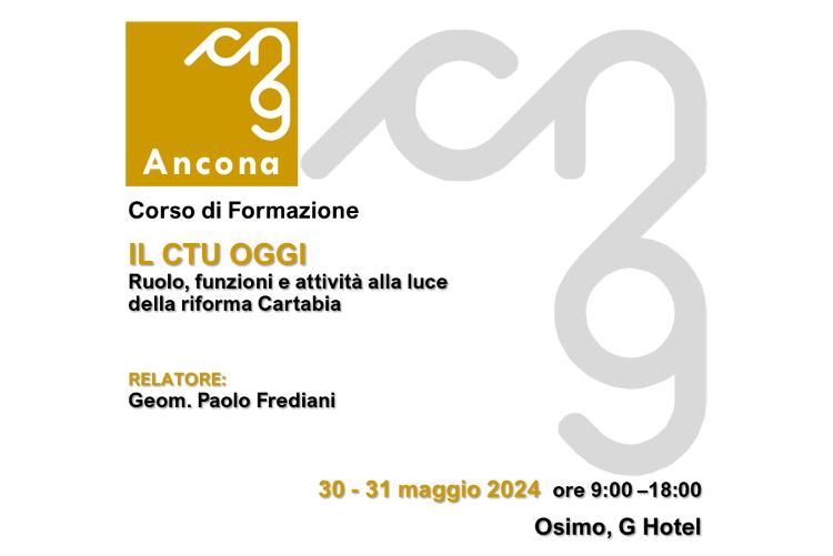 che si terrà il 30-31 maggio 2024 dalle ore 9.00 alle ore 18.00 presso il G Hotel di Osimo (programma in allegato) con relatore Geom. Paolo Frediani.