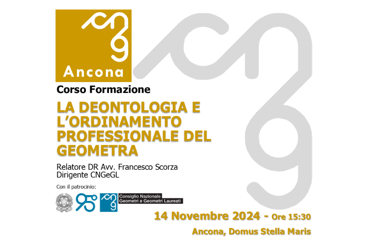 Il nostro nostro Collegio con il patrocinio del Consiglio Nazionale Geometri ha organizzato l’evento gratuito sul tema della Deontologia Professionale dal titolo: